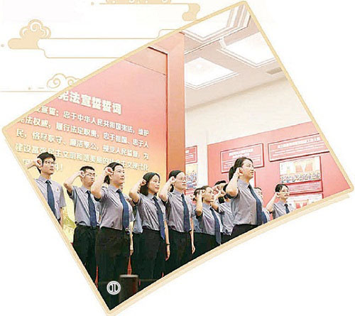 图①:2025年8月4日,上海市崇明区检察院青年干警进行宪法宣誓。 本报通讯员王斯怡摄