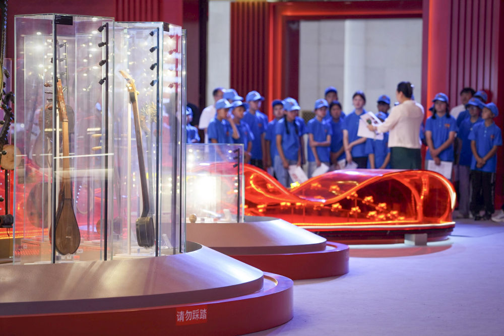 2025年7月18日,30余名参加“石榴籽一家亲”研学营的戍边工作人员子女在北京民族文化宫参观。新华社记者 邢广利 摄