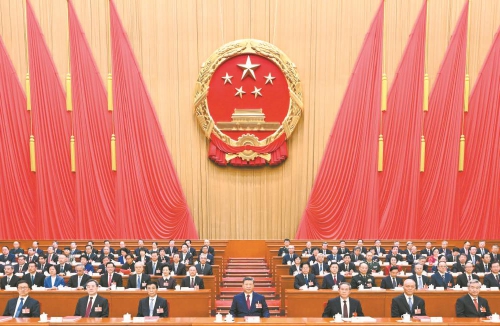 赵乐际说,我们要立足人大职能职责,坚持党的领导、人民当家作主、依法治国有机统一,践行全过程人民民主,坚持好、完善好、运行好人民代表大会制度,切实发挥国家根本政治制度优势,认真履行宪法法律赋予的职责,为实现“十五五”目标任务提供法治保障;人大代表要忠实代表人民利益和意志,依法履职尽责,密切联系群众,在本职岗位上建功立业、作出贡献。