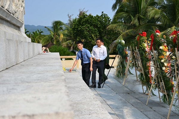 轻轻将鲜花摆放在纪念碑前,并缓步绕行烈士纪念碑一周